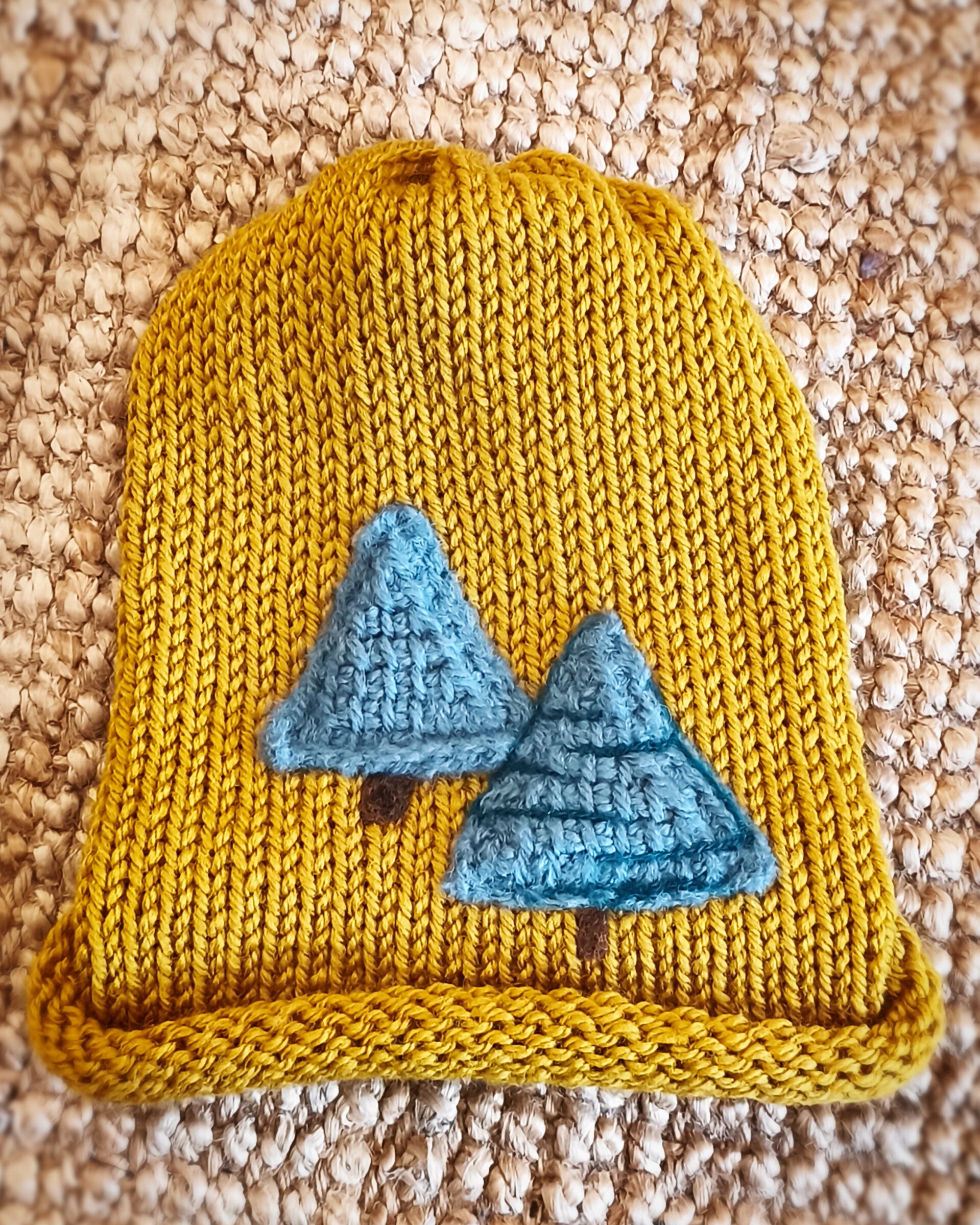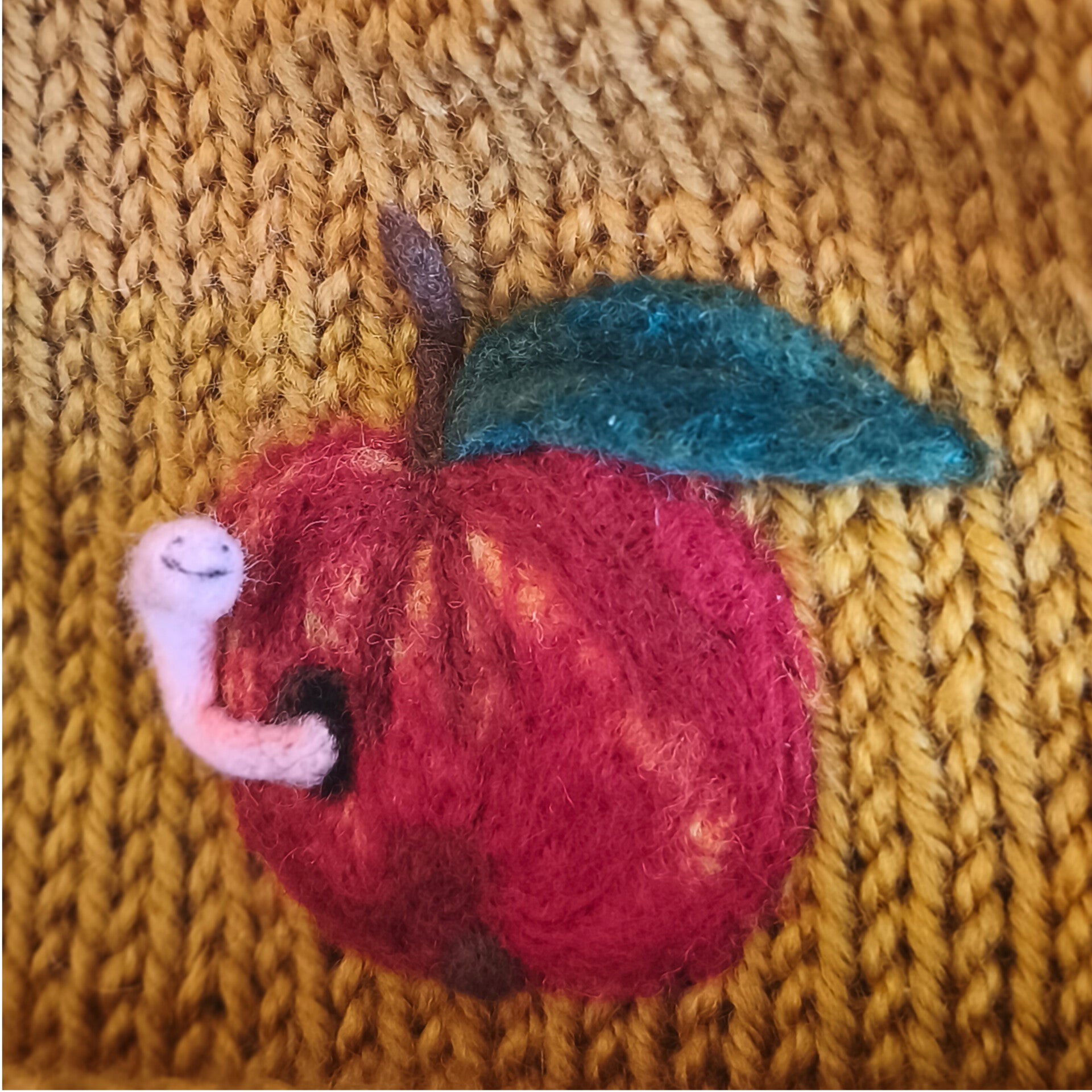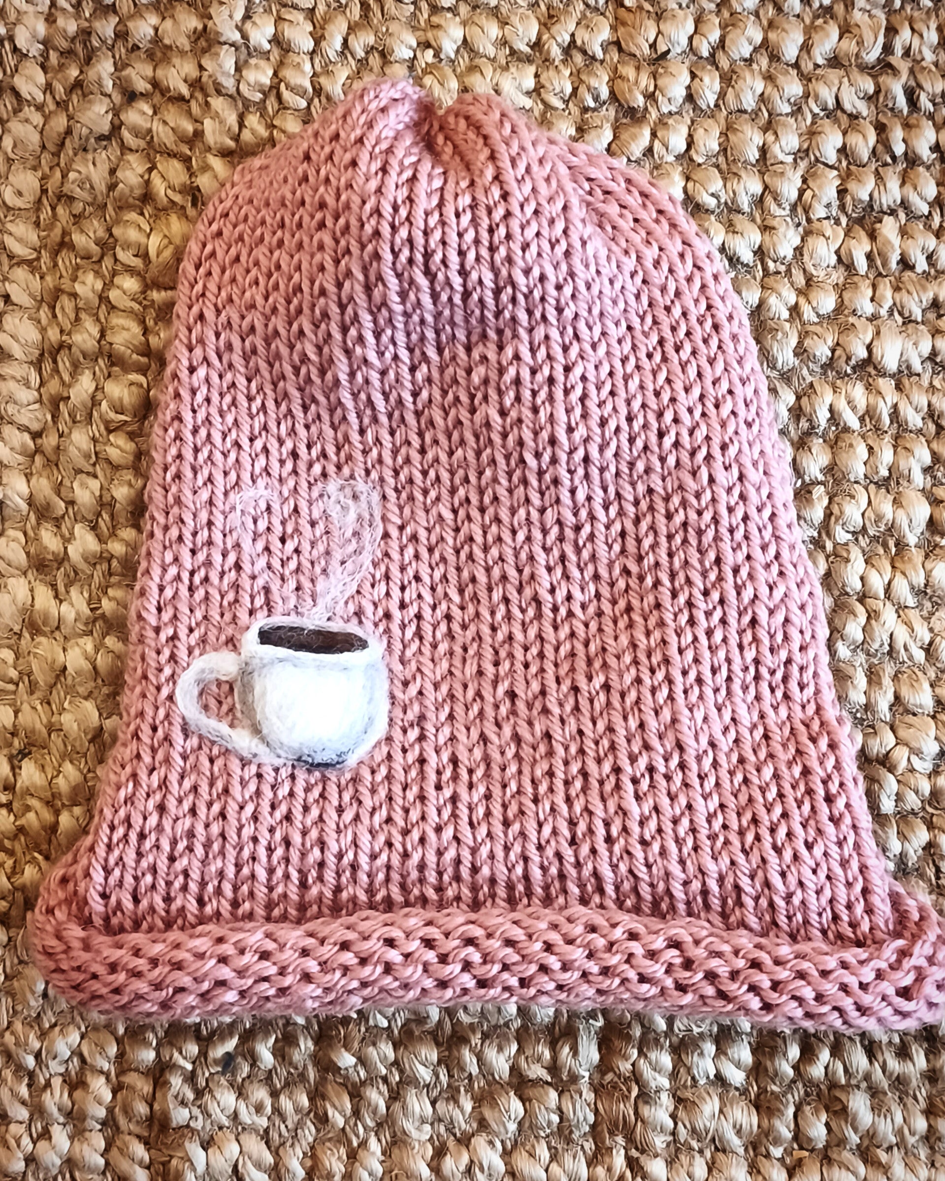 Czapka z grubej we艂ny alpaki dekorowana metod膮 filcowania na sucho 馃